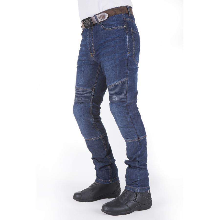 Günlük motosiklet kullanımı için ideal, normal bir kot pantolonundan farklı görünmeyen fakat motosiklet üzerinde güvenlikten ödün vermeden kullanabileceğiniz motobike jeans kevlar kot motosiklet pantolonlarında diz ve kalça korumaları dahil olarak gelmekte, CE onaylı korumalar SAS-TEC firmasının ürettiği korumalardır.